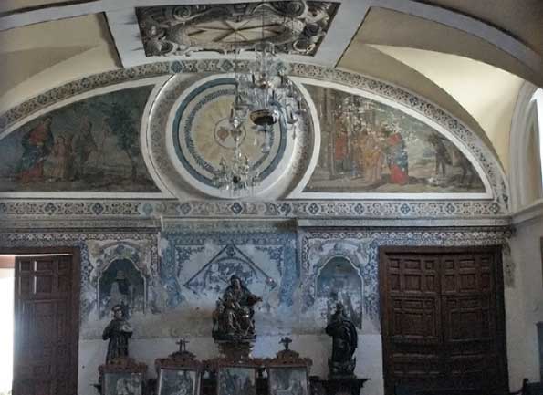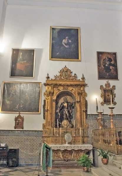 Junto al presbiterio vemos este retablo de San Felipe Neri. Sobre el una serie de cuadros del que destacamos el que he ampliado a continuación