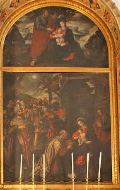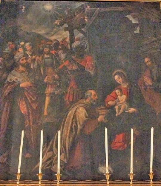 Retablo con dos impresionantes pinturas de Juan del Castillo que por sus dimensiones no pudieron ser expoliadas por Soul, parece que en el equipaje no entraban los cuadros grandes. Descanso en la Huida a Egipto y en la parte inferior la Adoración de los Reyes Magos fechados en 1625