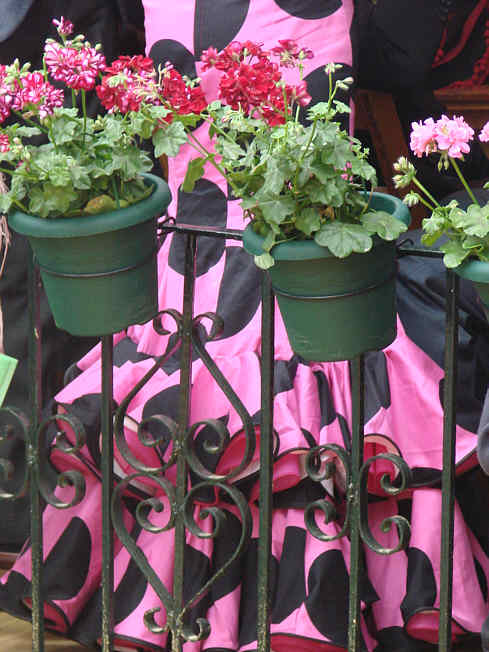 También florecieron las flores de nuestras mujeres ( adolescente, señoritas y señoras ) que sin duda engalanaron con su belleza toda el Real , con todo mérito, pues trajes de flamencas escogidos o diseñados por ellas mismas con su obsesión por la originalidad es expusieron a mancharse de albero, de agua , todo lo contrario para lo que fueron creados, para la luz y el calor . Visto así parece como si el Sol hubiera estado en todo lo alto . De verdad habia que tener ganas para vestirse de flamenca .-