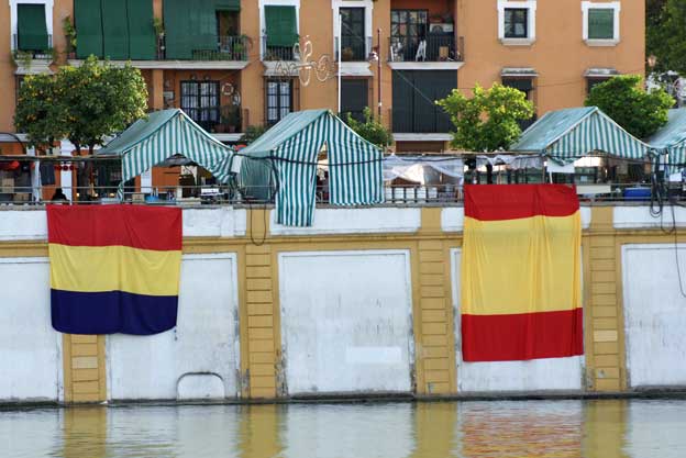 Entre los doce bocetos presentados a concurso, el Rey eligió dos, con los colores rojo y gualda a los que varió las dimensiones de las franjas, declarando reglamentario el primero para la Marina de Guerra y el segundo para la Mercante, mediante Real Decreto de 28 de mayo de 1785 .- En el reinado de Carlos IV (1788-1808), las Ordenanzas Generales de la Armada Naval de 8 de marzo de 1793 hacen extensivo el uso de la bandera rojigualda a las plazas marítimas, castillos y defensas de las costas y la definen como Bandera Real.- El único paréntesis en la historia de la bandera de España , de la bandera tricolor de la II Republica va desde 1931 a 1939 . Como verán es solo una anécdota temporal , en una etapa mediata .- Señores rojos republicanos , la bandera tricolor representa el régimen mas desastroso de nuestra historia desde su principio a fin , donde curiosamente uno de sus principales saboteadores fueron sus propios antecesores correligionarios que lo pretendieron usar de catapulta a un comunismo puro y duro .- La bandera de la II Republica, representa fracaso, caos, pistolerismo como en el Oeste americano, paro, pobreza, persecución religiosa y llevó a un país tan al limite . que se vio abocado a una guerra fratricida que de propina perdieron con todos los pronunciamientos , pasando de un "No pasaran a un "Piernas para que os quiero". Todo eso representa y nos recuerda la banderita de marras .- Uno siente una sana envidia cuando desde el 11 M en los Estados Unidos desde la mas modesta caravana hasta en la mansión mas lujosa ondean las banderas de las barras y estrellas , en una comunión general patria .- Hoy esta bandera tricolor es símbolo de una minoría minoritaria que se alimenta de un revanchismo cotidiano pretendiendo escribir una historia de ciencia ficción bélica de la que para colmo fueron sus clamoroso perdedores .- A ver si para el año que viene la única bandera que tiene protagonismo en la Velá de Santa Ana , es la inalcanzable bandera pero de la cucaña , tan inalcanzable como el sentido común .-