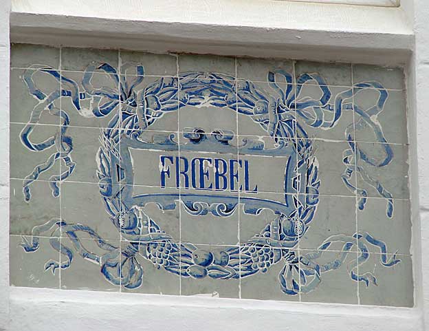 En la fachada principal se encuentran unos rótulos que hacen referencia a pedagogos y filósofos --Descartes, Montesinos, Aristóteles, Froebel, Fenelón, Pestalozzi, Spencer y Platón--.![]()