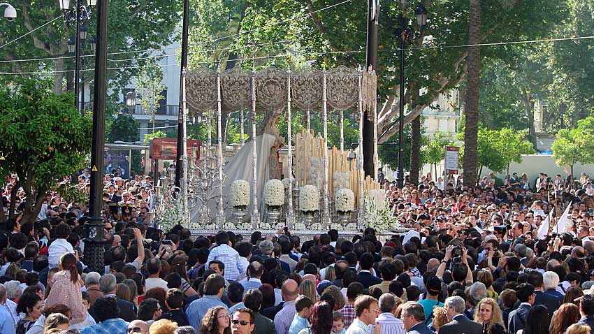 La Cena con la extraña combinacion de paso de madera oscurra y candelabros con guardabrisas dorado ...ehhhh no pega .- La Hiniesta San Roque, si a los Nazarenos con túnicas bordadas La Estrella La Amargura El Silencio Blanco