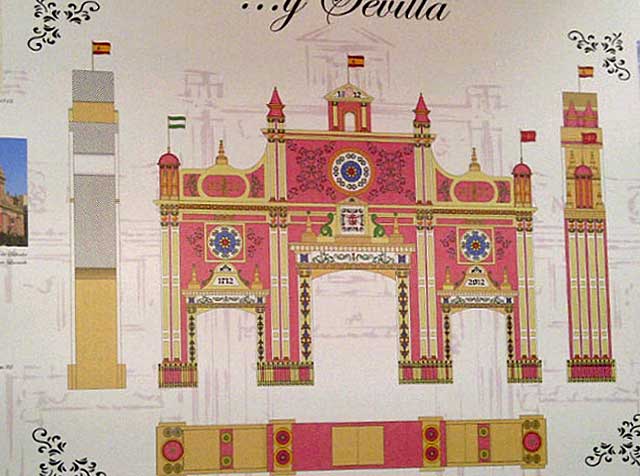 Lo último, es que su fachada , será la portada no del Corpus, que sería lo lógico, al tratarse de un supuesto templo religioso católico, sino para la Feria de Sevilla 2012 ( no es coña, no es una inocentada , es de verdad ). Salvo que no me falle la memoria se ha reproducido: el Puente de Triana, la Plaza de España, el Costurero de la Reina, Las Puertas de Sevilla, la Maestranza ( el palco real ) , la Pasarela, el Edificio de Puente y Pellón , pero es la primeras vez que se recurre a un edificio supuestamente religioso .-