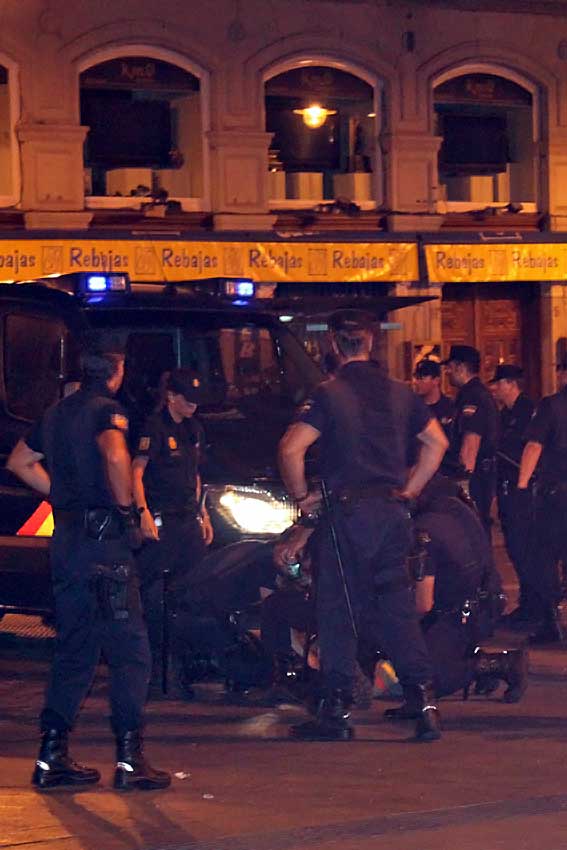 No pensaba publicar la foto superior , ni escribir sobre esto , pero creo que es mas que necesario hacerlo, pues los que estuvimos allí en la salida y traslado de la Virgen de Regla desde la Iglesia del Carmen a Cibeles , hubo un par de momentos en que viajamos del 2011 a los "felices" años de la República 1931-1936 o a la tarde noche del 18 de julio , en vivo y en directo . Había que estar allí .- Los responsable del traslado de pasos al Paseo de Recoletos en esa cosa rara llamada Madrugá(da) en madrileño y de verano ( lo siento - o no - señores pero la influencia de nuestra Semana Santa en la Villa y Corte es mas que palmaria , rayando en la fotocopia ) , no lo tenían muy claro, pues cambiaron por tres veces la hora salida de la Dolorosa de la calle Orfila, por lo que Manuel Serrano Hidalgo y un servidor en esta pequeña expedición cofradiera , nos plantamos en la inclinada calle del Carmen a las cinco de la mañana , teniendo por compañía a un vagabundo que dormía plácidamente . Poco a poco, la meritada calle y sus aledaños se fueron llenando de personas que venían de ver otros traslados . A las cinco y media en la parte superior de la calle irrumpieron grupo de zarrapastrosos indignados ( los milicianos por lo menos en su día estaba afeitados y mejor vestidos ) , lanzando todo tipo de insultos blasfémicos ( palabra hoy vacía de contenido ) , insultos al Papa ( calcados de la redes sociales ) , ofensas a los que allí estábamos y lanzamientos de pequeños objeto, en una mas que evidente muestra de provocación . Un cámara de Antena · 3 , se aventuró en medio de ambos grupos y los filmó , imágenes que no he logrado ver en televisión .- Afortunadamente la policía apareció masivamente por aquella calles estrechas y peatonales , a modo de llegada de Séptimo de Caballería , entre los aplausos de los aliviados insultados y la indigna y cobarde retirada de los insultantes , que salieron corriendo con su 15M y su laicismo agresivo tan galopante como su huida .- Por fin, la Virgen de Regla salió y la procesión encaminó sus pasos hacia la Puerta del Sol . Al llegar a ella , había grupos dispersos de sarnosos y piojos indignados, ( todos machos no se veía ninguna perra flauta ) tirados por el suelo esforzándose en mantener una actitud tan indiferente como irrespetuosa con lo que estaba viendo . De pronto uno de ellos , incompresiblemente a pesar de la fuerte presencia policía, no sabemos si fruto de un bajo nivel intelectual , los efecto de algún estupefaciente o investido por la impunidad tolerada desde nuestro (des)gobierno , comenzaron a lanzar todo tipo de blasfemias, insultos y cuando suicidamente comenzó un conato de ataque , fue rápidamente reducido y detenido por la policía que allí estaba y que puede ver, gracias a la instantánea del sr Serrano . Eran la seis y media de la mañana .- Como en las películas de terror , la luz del día empezó a despuntar y con ella, desaparecieron estos " fantasmas" indignantes , mas que indignados y el peregrinar hacia Cibeles discurrió con toda normalidad . Repito había que estar allí a esas horas para verlo y vivirlo .- Todo es mucho mas viejo de lo que pensamos, no hay nada nuevo bajo el Sol , lo que hay es mucha ignorancia e incultura, a pesar de que hoy hay mas y mejores medios de comunicación en manos de cualquiera, dicho sea esto en el peor sentido de la palabra . Este mal llamado movimiento 15M , es un calco de los camisas pardas de Hitler, de los camisas negras de Mussolini o los llamados descamisados de Perón ( el aquimimario de Evita ) , repito la única diferencia con los actuales sea en la higiene y aseo personal . El fascismo derecha en poco o en nada se diferencia del fascismo de izquierda , son familia , objetivo la desestabilización callejera sistemática , estar en permanente protesta por todo y contra todos, usando la intolerancia, el " manadismo" , la imposición de presencia de grupos financiados, adiestrados y organizados que arrastran con facilidad a los ignorantes tan aborregados, como adocenados.- La cantinela en las calles de Madrid y en las redes sociales, esta vez es el dineral que cuesta el viaje del Papa , frente a la hambruna del cuerno de África ( que muchos no saben ni colocar en el mapa ) . Curiosamente ninguno de esto malolientes indignados , cuestiona física , ni cibernéticamente por el auténtico dineral que cuesta nuestra absurda presencia militar en Afganistán o cada vez que nos ha visitado algún cuasi dictador sudamericano o líder de mundo árabe con el que ZP se paseo de la manita , con el que ahora por lo visto estamos en guerra .- Es solo una cuestión de respeto y educación básica hacía los católicos. El mismo respeto que pide la izquierda mas resentida y sectaria , cuando se les llama rojos; el respeto que piden los gays desde sus carrozas en tanga ,cuando se les llama maricones; el respeto que piden las "no mamas" que interrumpen su embarazo , cuando matan a sus bebes . En este punto, yo me pregunto ¿serían tan valientes contra manifestaciones de otras confesionalidades ? ¿Serían tan valientes contra la visita y oraciones de algún clérigo de otra confesión a Ex-paña? La respuesta es la misma: NO. ¿Y saben por qué? porque la fe cristiana, en este caso la rama católica, predica el -mal- ejemplo de poner la otra mejilla… Cosa que no encuentras en las palabras de otras religiones que al contrario, predica con la palabra y con los actos la difusión de su fe por las armas… cosa que aún hoy día ejecutan sus fieles, que, si bien no pueden difundirla por las armas, sí que la protegen con beligerancia extrema -que prueben esos laicistas de medio pelo con piojos a lanzarles improperios … A ver si hay huevos, teniendo incluso la obligación de lanzar fatuas contra quienes arremetan contra sus símbolos y el derecho de acabar con las vidas de quienes osen a ello. Así, mediante esta comparación y tras unas cuantas líneas, llegamos a la conc