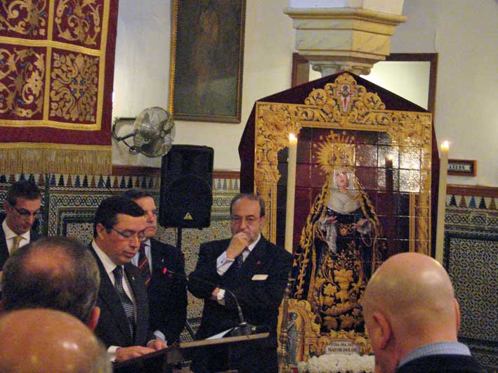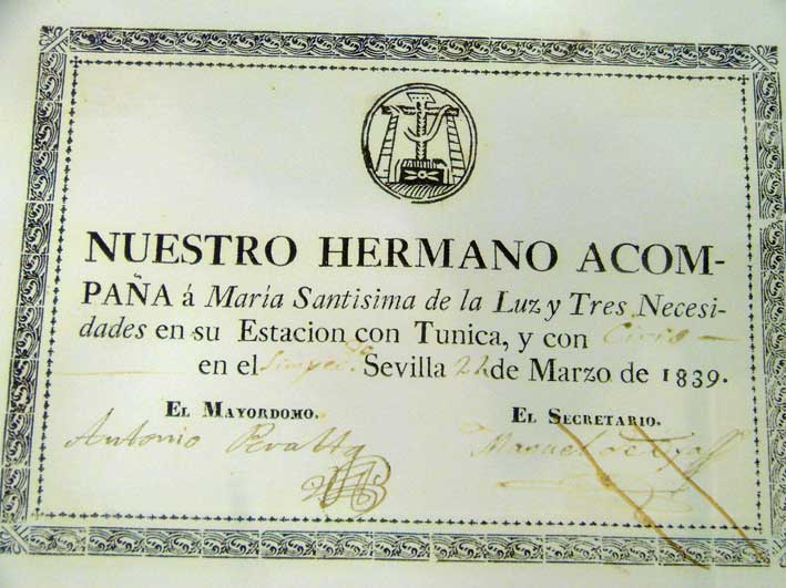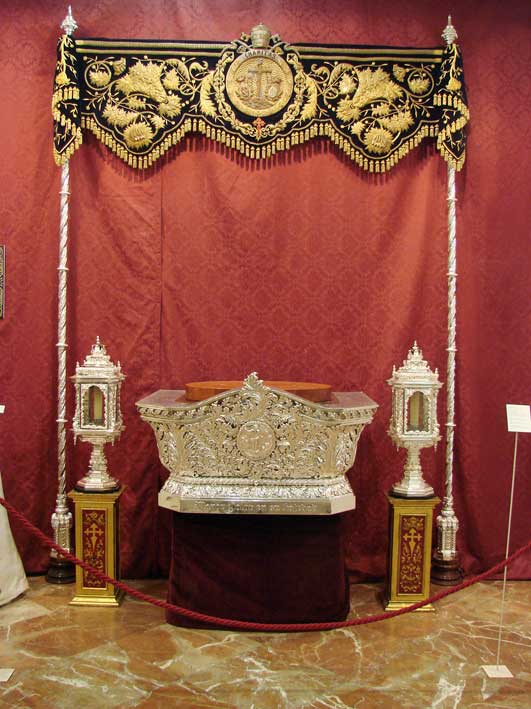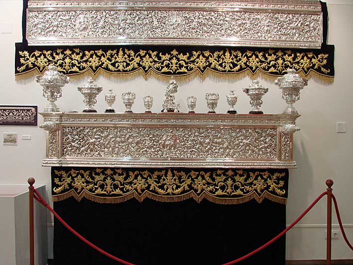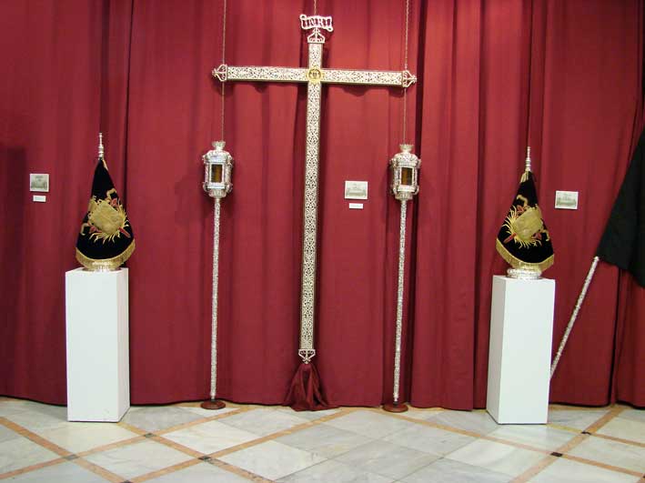 Esta primera sala acoge, asimismo, el manto y las dos sayas que vestía la Dolorosa cuando formaba parte del paso de misterio, ahora de la Virgen de la Luz, y el último traje de luces que usó el torero Curro Romero y que donó a la hermandad. |