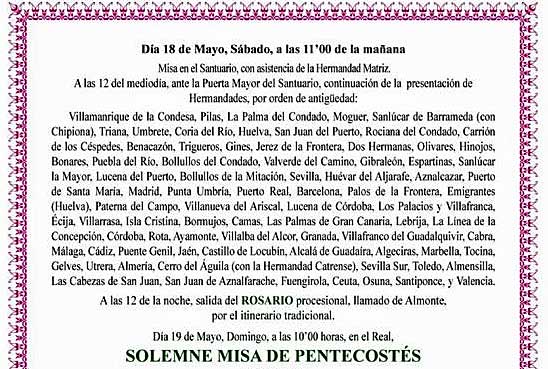 No deja de ser curioso que en la convocatoria de cultos oficial de la Hermandad del Rocio de Almonte en la presentacion de hermandades aparezcan juntas el Cerro del Águila y entre parentesis con la Hermandad CATRENSE ( un gazapo mecanógrafico lo tiene cualquiera, la segunda fila por debajo ) .- Bienvenidos a la nave del misterio .....rociera .- |