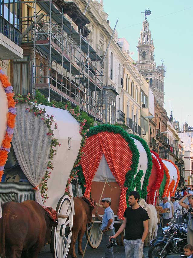 preparaba las carretas de Sevilla , de donde salian y a donde regresaban