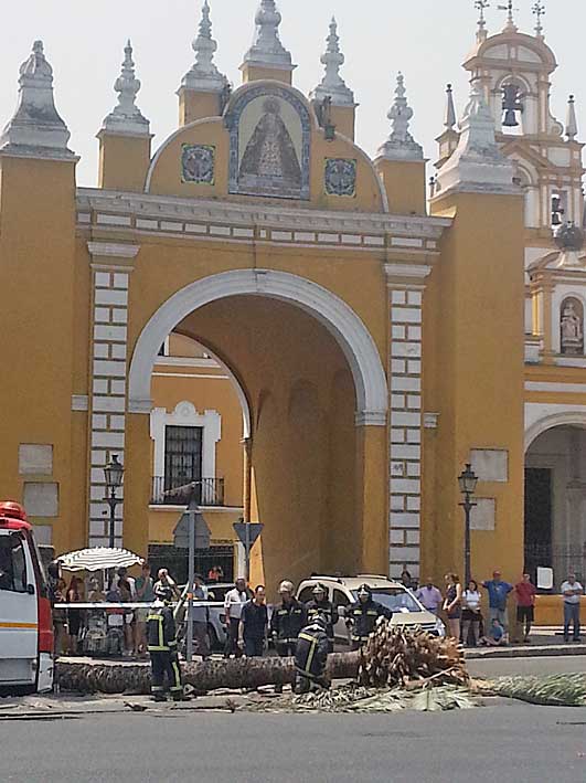 dio lugar a que ayer esta palmera cayera en acto de servicio frente al Arco
