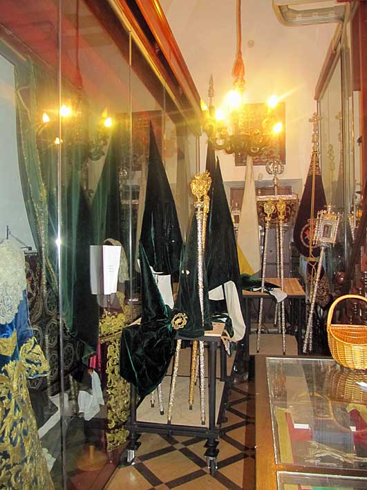 Curiosa la primera foto, donde se ven los capirotes, antifaz y las varas de la presidencia de la Hdad Macarena , entre ellas, la dorada del hermano mayor , en las dependencias de la Hermandad del Amor , en las cuales estuvieron reunidos para decir que hacian . . Al fondo se ve claramente el estandarte de la Hermandad del Amor .-