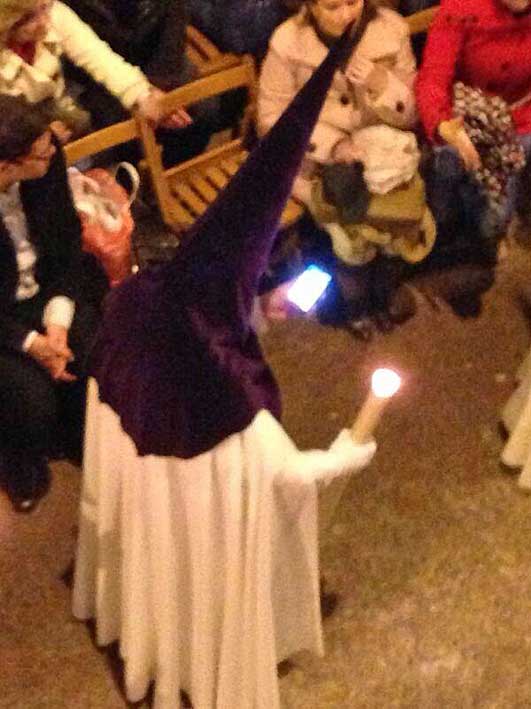 Movil adicto hasta vestido de nazareno . Esto hay que regularlo |