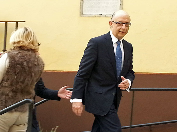 Fue seguido del ministro Montoro, que en este caso supongo no habrá encargado nada a los inspectores de la Agencia Tributaria para este evento, pues ya iba él . Ccuriosamente no habia mucha expectación, vecinas que iban con sus carros de la compra o guiris que contemplaban todo esto con la misma cara de desconcierto que ven una procesión de impedidos . No hubo ni gritos, ni insultos, ni inevitables tontos de banderitas republicanas, ni aplausos, solo una silenciosa y respetuosa curiosidad .-