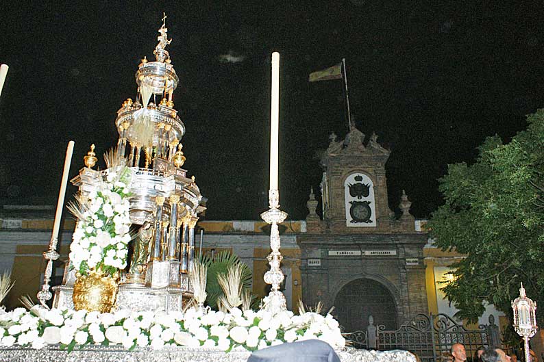Que pena que no coincidiera con esta procesión, con la grabación de otra una pelicula como "Grupo 7" , que corrieron y saltaron sus anchas por todas las cubiertas de este histórico edificio que por lo visto para ese rodaje milagrosamnte si estaba en perfecto estado.- Quede aqui el testimonio de este desafortunado recorrido, por la calle Portacoeli y por Eduardo Dato con las puertas de la Fábrica de Artilleria cerradas a cal y canto . Asi cuida la Sevilla oficial , su rico patrimonio inmaterial del úncio Corpus vespertino y que no se celebra en Junio en nuestra ciudad , mientras una Hermandad se esfuerza año a año en cuidarlo y mejorarlo para que este en perfecto estado de revista .-