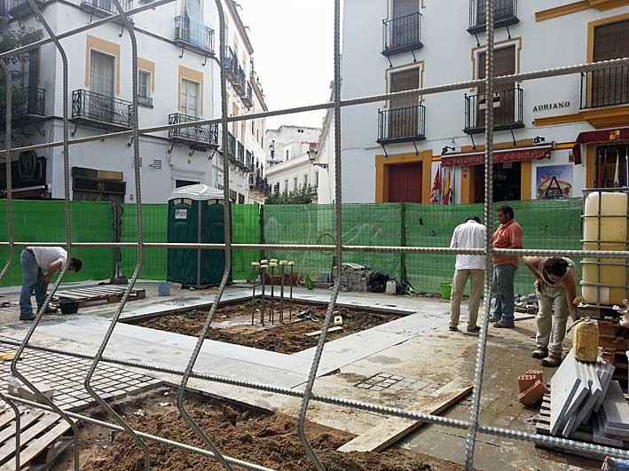 Desgraciado estado actual del mismo enclave al dia de ayer Pues no se sabe que bicho que habrá picado a nuestro Juaninasio, que este verano se ha vuelto loco haciendo obras en cosas que estaban bien, siguiendo perfectamente la linea de su antecesor Monteseirin, con la cantidad de baches que hay en Sevilla declarados monumentos nacional, asi como aceras destrozadas declaradas BIC, por el tiempo que lleva así. Confiemos que nuestra gran lider Susana, ordene la urgente creación de un Observatorio de baches y acerado destrozado de Sevilla e incluso un Centro de Interpretación con visitas guiadas a los mismos .- Pues como les decía, con la faltita que hace arreglar tantas cosas en tantas calles de Sevilla, trás destrozar innecesariamente algo que era armonioso con su emplazamiento, van y lo destrozan y en su lugar colocan una soleria de granito modelo encimera de Ikea , idéntico estilo monteseirino como hizo en la soleria de la "piel sensible" de la Costanilla , donde en verano las guiris lo que se dejan es la piel, pero de los pies, que les sobresale de las chanclas quemándosela por el calor concentrado en el granito.-