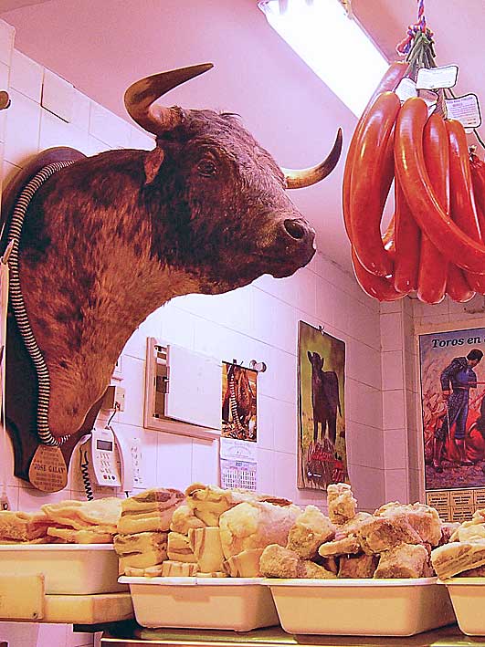 Puestos de mercados donde se puede adquirir carne de toro de lidia, directamente del ruedo al plato, como el que come carne de ternera .-
