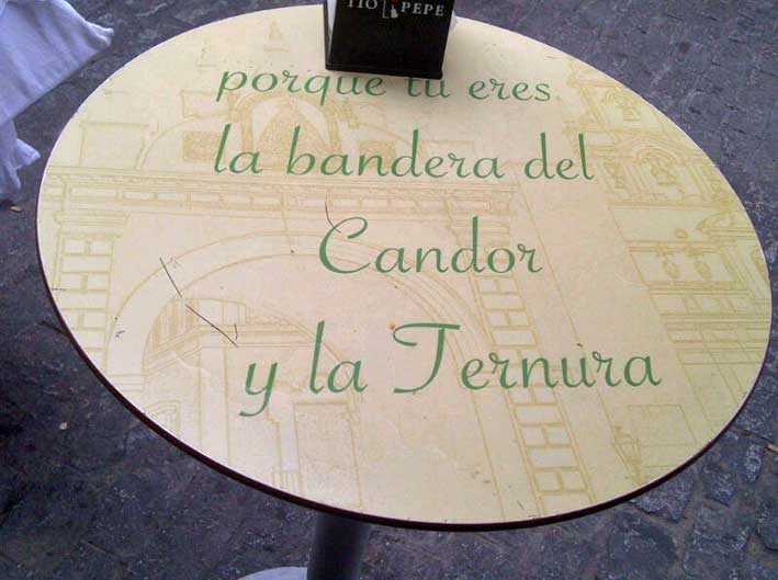 . En este caso , lo llamativo son las mesas del mismo , donde esta escrito