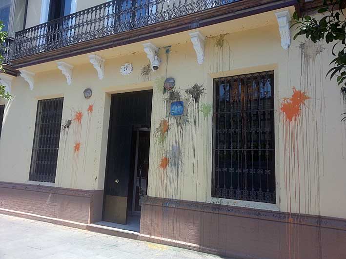 Pues ayer ocurrió algo parecido en Sevilla, una serie de individuos/as lanzaron pintura sobre la fachada de la sede del PP de la calle San Fernando de Sevilla, porque están los muy carajotes indignados, enfadados con lo que está ocurriendo, y piensa de que esta manera van a solucionar algo. Esa es su única aportación a lo que está pasando al día de hoy, posiblemente las almas mías no den para mas.- Vaya por delante que un servidor es un votante del PP ( no tengo ningún pudor en decirlo públicamente ) totalmente arrepentido, y en las próximas elecciones va a votar su puñetera madre a ningún partido político, hasta en las elecciones de la comunidad de mi bloque voy a votar en blanco .- Lo que no comprendo, es como los descerebrad@s que han hecho esto, tiene la capacidad de discernir selectivamente su indignación, pues en buena lógica y coherencia , estos huevazos de pintura deberían haber aparecido de la misma forma "democrática" y " tolerante" por un elemental principio de justicia distributiva ( la igualdad entre los iguales y la desigual entre los desiguales) en la sede sevillana del PSOE y en la sede de Izquierda Unida ( Unida al PSOE se entiende, frente populismo puro ) .- Nuestra querida Ex-paña de Cecilia, en lo que a su (des)clase política se refiere sencillamente da asquito en su totalidad, no hay espacio suficiente en las portadas de los periódicos que deberían hacerlas de doble ancho, para todos los escándalos políticos que hay todos los días, de TODOS los partidos , ocupando un lugar destacado en esta champions de corruptela nuestra junta ( con minúscula ) de Andalucía, desfilando tantos miembros del partido socialista por los juzgados de la Pasarela, ( casi 100 imputados con la EREs ) que a este paso le van a cambiar el nombre y rebautizarla ( con esto de la menoría histórica lo que gustan los cambiazos ) como Plaza del Capullo ( de rosa se entiende ) en la Mano .Tranquilos que en los juzgados de la plaza de Castilla en Madrid con lo de Bárcenas ( y lo que no es Bárcenas ) , también la podrían rebautizar como Plaza de la Gaviota Equivocada ( no precisamente por Alberti ) .- Seamos justos, no solo los capillitas con trajes azules y gafas de Sol ellos, de mantilla y claveles ellas, tienen esta extraña capacidad , para molestarse, según, como, cuando y con quien. A los perros flautas, a estas movilizaciones sociales minimalistas, remuneradas y orquestadas, les pasan tres cuarto de lo mismo a estos muy indignados con sus chanclas con pelotilla entre los dedos de los pies ellos, con pelos en lo sobacos ellas, pues tengan en cuenta que esta nación de mas de quinientos años reducida hoy a una "marca" ( como el periódico deportivo ) nada es verdad ni es mentira todo es según el color y lo polarizado que esté del cristal con el que se mira la corruptela .- Los sevillin@s somos así .- |