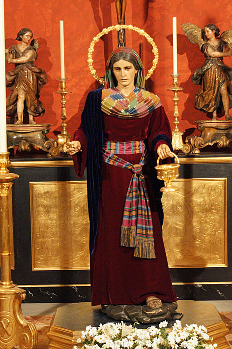 Tras esa mamarrachada de San Bar-Tolo, promocionado por la multinacional Coca Cola , en pro de apuntalar a sus clientes inmediatos en crisis, los bares, quizás olvidándose que la crisis real esta en los mediatos o clientes finales, a saber los consumidores, pues la ausencia de estos lleva al cierre de aquellos. Que por cierto, dado el absoluto desbocamiento de veladores (mas de 13.960 con licencia para molestar , sin licencia ni les cuentos ), dada la aprobada ordenanzas del pro ruido en Zoidolandia, cada vez que se cierra un bar en Sevilla, es como si le tocara la loteria a un vecindario, pues hay vecinos que pueden descansar, hay vecinos que dejan de oler a fritanga de aceite mas que quemado ( no se comprende como hay personas que se comen lo que sale de esas freidoras o cocinas ), y hay hasta peatones que pueden andar por las aceras, sin hacer slanlom de esqui alpino, entre mesas, sillas y sombrillas escupe agua vaporizada y propagadoras de legionela. Algún dia, tendremos la suerte que nos toque un alcalde y un consistorio a esta desafortunada ciudad, como Dios manda, poniendo orden , a estas patentes de corso para no dejar descansar, ensuciar y limitar la movilidad .- Tras lo de la "bartolada" , es mas que necesario recordar algunas cosas que se dan por obvias. Señoras, señores, niños y niñas , Coca Cola , hoy es Santa Marta la hermana de Lázaro y de Maria , residentes en Betania, pintada por Velázquez y tallada por Sebastian Santos en una talla antológica por cierto y verdad, y que vemos cada Lunes Santo en el Misterio del Traslado al Sepulcro flotar entre una nube de incienso iluminado por cirios azules .- Santa Marta no tenia un bar con mas de 25 veladores en Betania, con especialidad en salmorejo o caracoles, es mas bien conocida por recriminar a su hermana María, por estar escuchando la palabra de Jesús en vez de ayudarla a preparar el almuerzo , por lo que después fue corregida por el Maestro, al que sirvió varias veces como consta en los evangelios de ahi que sea es patrona de cocineras, sirvientas, amas de casa, hoteleros, casas de huéspedes, lavanderas, de las hermanas de la caridad, del hogar.- Es mas conocida en Francia por haber logrado en tierras francesas, a donde marchó con sus hermanos a evangelizar, y en particular en Tarascón de donde es patrona por haber vencido a la Tarasca un dragón al que venció con agua bendita de ahí su representación iconográfica del acetre y el hisopo ( en Semana Santa porta los pasionistas clavos de Cristo ) . Pero tampoco hay que irse tan lejos tambien es patrona de la vecina localidad sevillana de La Algaba .- Hoy esta en Besamnos en San Andrés, por lo que señores de la Coca Cola, en pro de sus queridos bares, vayan a rezarle a la auténtica patrona, para que la clientela se queden Virgencita como estaba, y ya de paso se marcan un detalle y le podria llevar hasta un ramo de flores, le saldrá mas barato que poner a una banda de cornetas y tambores , pegando trompetazos y tamborazos, totalmente fuera de contexto, sin llevar ningún paso delante .- |