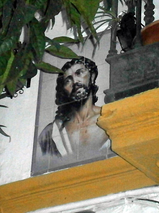 Fue instalado no hace mucho tiempo el sábado dieciséis de abril de 2011 se procedió a la inauguración del azulejo en un domicilio particular, curiosamente siendo, obra un pintor ruso Eugenio Kavirov ( quien sabe cualquier dia nos hace un cartel de Semana Santa ).-