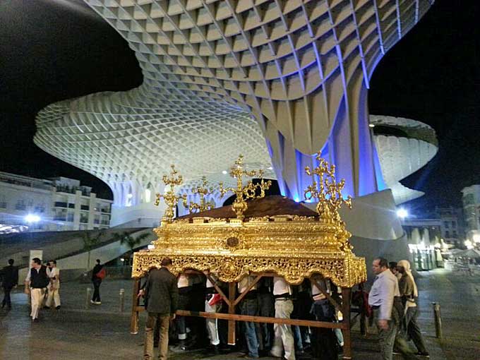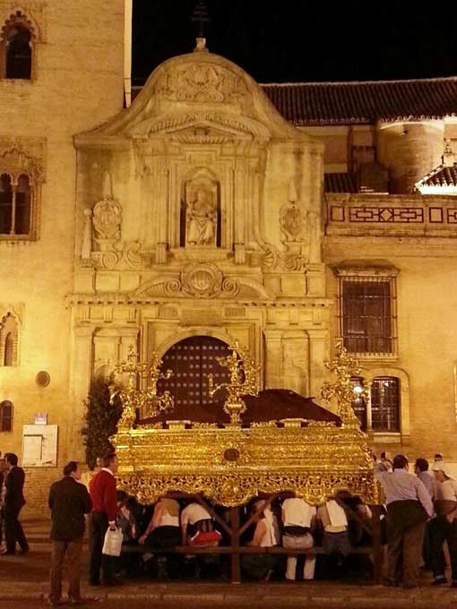 que otros llaman rampla ) , con costaleros y pasos , entrada en el Salvador