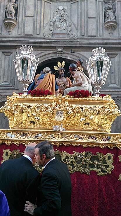 Estrena cuatro cartelas ejecutadas en plata de ley en el paso de la Coronación de Espinas. Orfebrería Triana .-