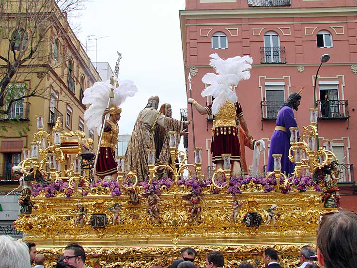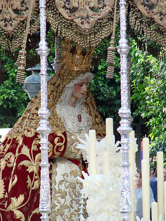 15 de Abril de 2014 Un Lunes Santo que comenzó muy nublado, incluso llegó a llover un poco por la mañana y a chispear en las primeras horas de la tarde, culminó con todo éxito luciendo el Sol .- Estas tres primeras fotos corresponde a la Hermandad del Poligono de San Pablo por Luis Montoto , ante su parada protocolaria de cortesia ante la Hermandad de San Benito , donde se pudo ver una estampa inusual la Virgen de la Encarnación en la puerta abierta que da a la meritada calle Luis Montoto .- El palio de la Virgen
