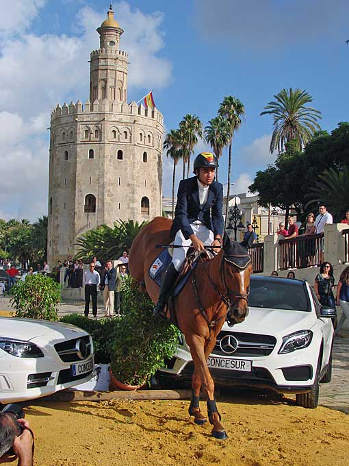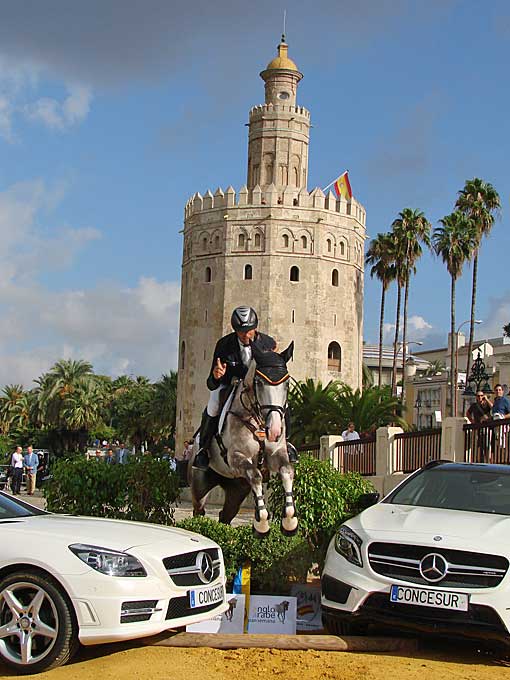 12 de Septiembre de 2014 Como saben (o no ) los caballos siempre ha formado una parte importante de mi vida y tiene un sitio especila en esta página. Con gran afluencia de medios ( algunos fotógrafos innnecesariamente temerarios ) y de curiosos se se hizo ayer a las 10 h la presentación oficial de la gran semana anglo-árabe, en un emblemático escenario como es la Torre del Oro, junto al Guadalquivir .- Entre los días 11 y 14 de Septiembre, como les decía tendrá lugar la Gran Semana Anglo-Árabe en el Real Club Pineda de Sevilla. La entrada es gratuita.- La Asociación Española de Criadores de Caballos Anglo-Árabe y el Ayuntamiento de Sevilla organizan este evento con un amplísimo programa de actividades, donde se reunirán unos 200 caballos que se encuentran entre los mejores de España. Destacan la XI Final del Ciclo de Pruebas de Selección de Caballos Jóvenes, , el Campeonato de España de Concurso Completo de Equitación y el III Concurso de Modelos, Aires y Salto en libertad de potros.- Asimismo, esta competición tiene un elemento particular que la diferencia del resto y crea un especial atractivo: es la única en el mundo del deporte que compiten en igualdad hombres y mujeres .-