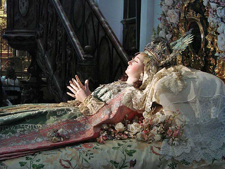 La visita casi obligada al Pozo Santo para ver a la Virgen del Tránsito, con colas de espera propias de una mañana de Semana Santa , para ver una escena al mas puro estilo rococo ( la cama como verán no es de Ikea precisamente ) , en una exquisitez conventual que pareciera llevarte a una de las estancia del propio Cielo , dentro de un marco absolutamente incomparable.-