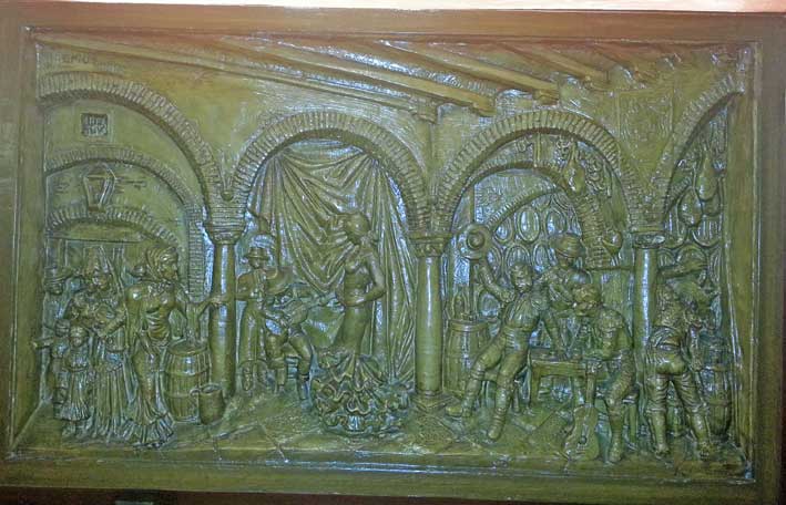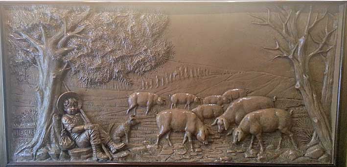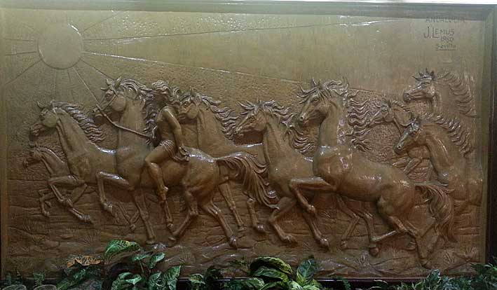 En el restaurante bar La Montanera , quizas este la mayor exposición y colección de grandes altos relieves, de mas de dos metros de ancho, obras de Lemus fechado todos a principio de los años 80 del pasado siglo XX y como pueden ver su temática central son escenas camperas del pastorero del ganado bovino, ovino y cerdos en el engorde de la montanera .-