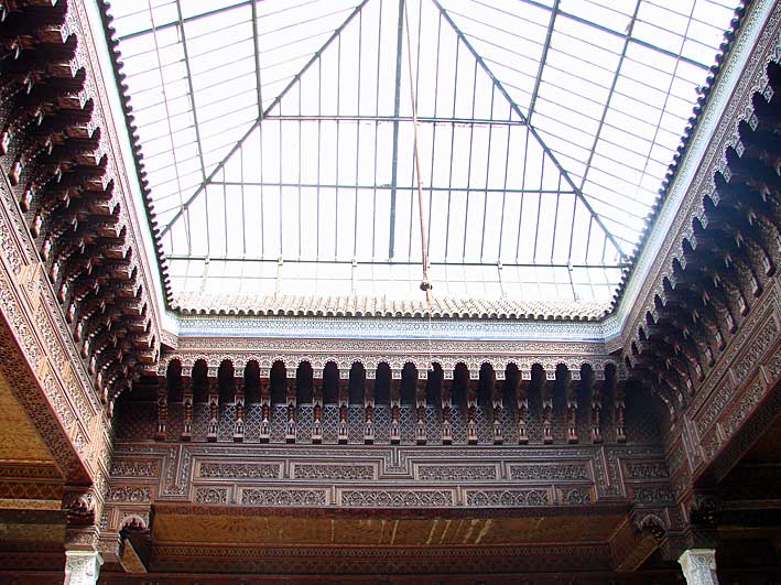 por una montera de cristal, tiene cuatro galerías con artesonados soportados