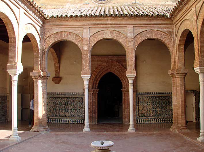 A través de esta puerta del claustro mudejar , se entra en la sala capitular de monasterio de la Cartuja de Sevilla donde podran contemplar seis túmulos funerarios de una gran belleza .-