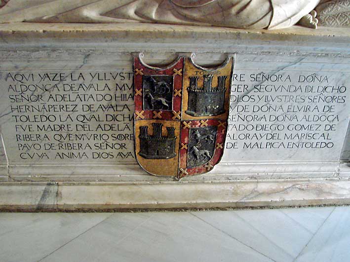 La siguiente es la de su hijo Perafán de Ribera "El viejo" . Fue un hombre muy longevo falleció en 1423 y como reza en la lápida murió a los 105 años ( estamos en el siglo XV) I Adelantado Mayor de Andalucía, Señor de Las Aguzaderas, Señor de Espera, Señor de Bornos, Caballero 24 de Sevilla, justicia mayor de Úbeda, Capitán General de la flota en el asedio de Lisboa. A Per Afán le habría correspondido el mando de cinco galeras armadas por orden regia en Sevilla. En 1386 será nombrado Notario Mayor de Andalucía.