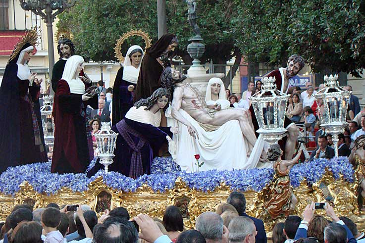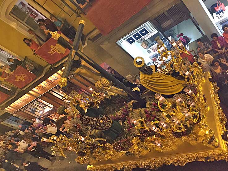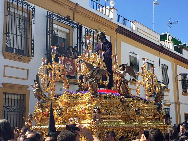 Un adelanto del martes santos en le tradicional traslado de los Sagrados Titulares de la Hdad de los Estudiantes desde su capilla al rectorado de la Universidad de Sevilla Hoy cupón conmemorativo de 75 aniversario del Señor de la Victoria de la Hdad de la Paz de Sevilla