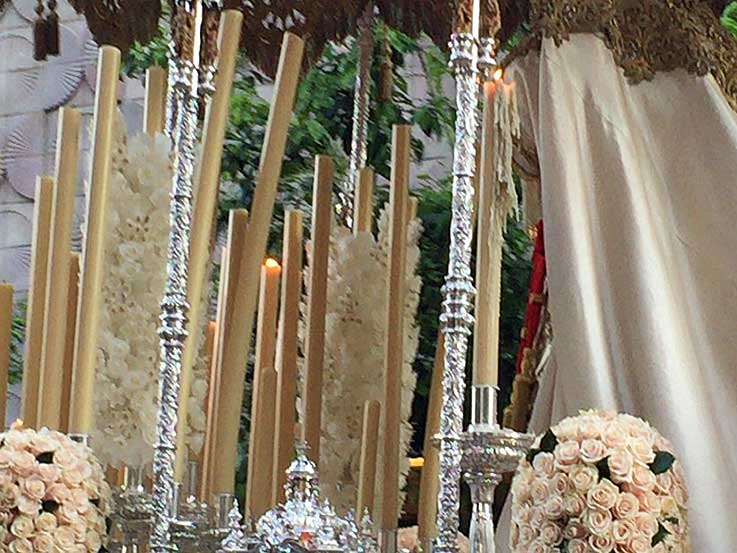 La Hdad del Poligono inició su estación desde tempranas horas de la mañana del Lunes Santo La Hermandad del Rocío cuyo Sagrado Titular estrenaba una túnica blanca nueva .-