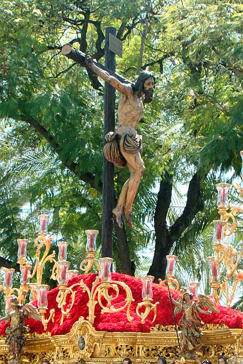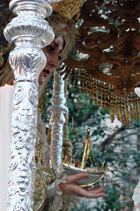 La Sed . La Virgen de Consolación estrenaba un barquito en oro cristal de roca y piedras preciosas San Bernardo El Cristo del Buen Fin. presentaba este año un extraño exhorno floral para un Crucificado