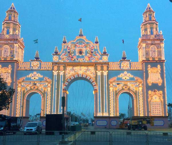 LA PORTADA DE LA FERIA DE SEVILLA 2015 DE DÍA E ILUMINADA