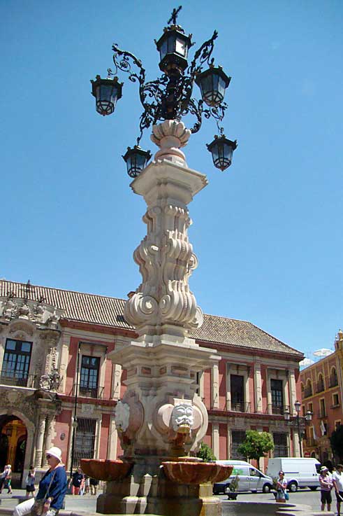 LA FUENTE FAROLA DE LA PLAZA DE LA VIRGEN DE LOS REYES NARANJA |
