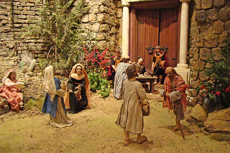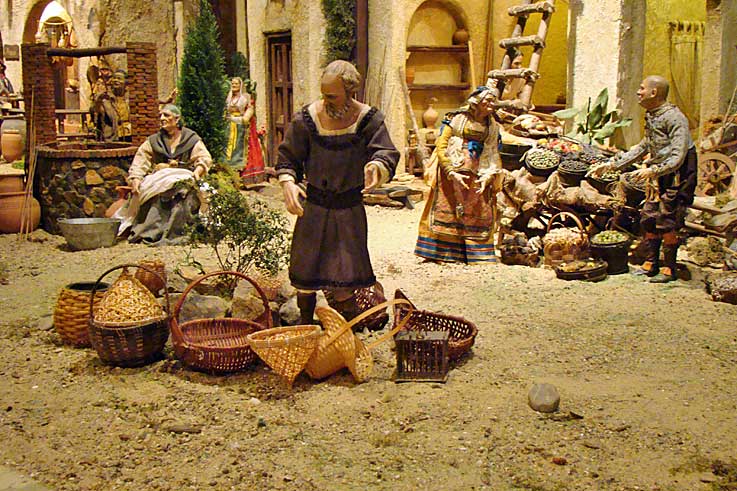 El Patio de la sede de la Plaza de San Francisco acoge un nacimiento napolitano con más de un centenar de piezas de candelero (articuladas). De lo religioso a lo popular, el montaje del belenista Luis Garduño nos muestra diferentes escenografías que recrean momentos cotidianos del siglo XVIII.-