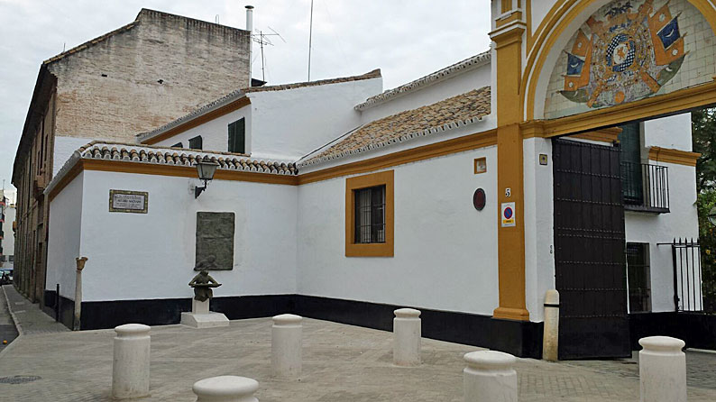 En este puente concepcionista en mi desambular por Sevilla de Besamanos en Besamanos, en el "julio-movil" ( mi sufrida y meritoria moto que me aguanta con resignación franciscana ) , he visto tapado y destapado, el nuevo monumento a Antonio Machado ( Sevilla, 26 de julio de 1875 - Colliure, 22 de febrero de 1939) en la fachada de la Casa ( he dicho casa ) de la Dueñas de Sevilla , que está en la CALLE ( allí no hay ninguna plazuela ) Dueñas .-