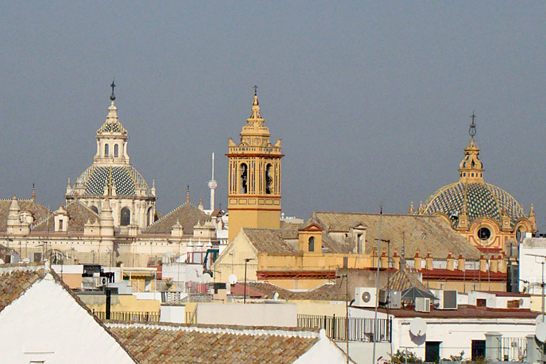 Esta es una vista dificil . A su izquierda tiene la Iglesia del Salvador ( EN LAS CUBIERTAS DEL SALVADOR - vistas de Sevilla - ) , en el centro el mirador de la torre Banesto de la Expo del 92 y a su derecha pintado en ocre, una de nuestras joyas escondidas es el Oratorio de San Felipe Neri, ( Iglesia de San Alberto ) situado en la calle Estrella, 2, expropiado a los Carmelitas en el siglo XIX pasando a los Padres Filipenses .-