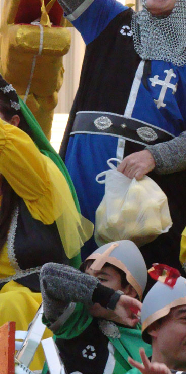 Por último, en estas dos fotos de la carroza del rey Melchos y Gaspar respectivamente , vemos que en su cortejo algunos de sus acompañantes llevaban en el turbante colocado estas cámaras que estan de moda de acción-deportivas, ( como las que llevan los marines de los Estados Unidos de América, en sus acciones de combate ) , para gravar la Cabalgata desde un plano subjetivo y desde un enclave enviadiable.- |