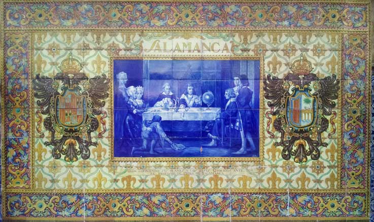 De propina los Reyes Católicos en Salamanca se reunen con Colón para planear , lo que sería el descubrimiento y conquista de un nuevo mundo, América