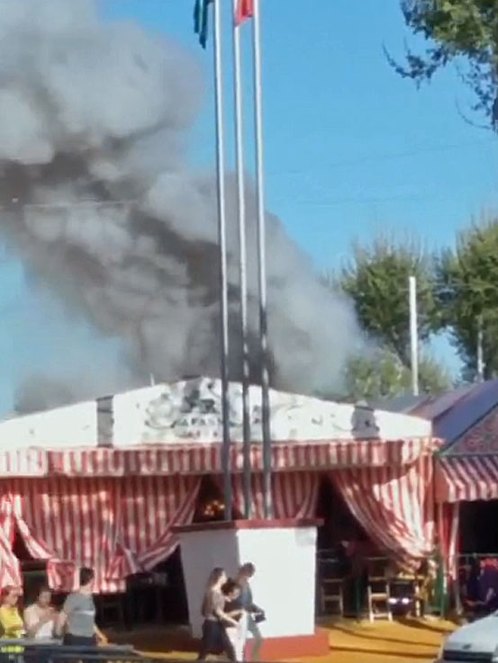 10 de Abril de 2016 Ayer sábado en la (pre)Feria de Sevilla 2016, sobre las 19 horas hubo un aparatoso incendio en la caseta situada en la calle Gitanillo de Triana 96 que acabó afectando a la caseta contigua, al número 98. Gracias a Dios no hubo que lamentar ningún herido .- Las llamas que afectaron a los toldos de ambas casetas y a los farolillos. Todo parece indicar según unas primeras estimaciones que el siniestro se originó en el sistema eléctrico de un aparato de refrigeración ubicado entre esas dos casetas.- Gracias a la pronta intervención de motoristas de policía local que avisaron a los bomberos, que llegaron de inmediato, al lugar del siniestro. El incendio congregó a multitud de curiosos por la cantidad de humo que provocó , y que se veía desde lejos.- Gracias a la rápida intervención del retén en la Feria y al material ignífugo el fuego no pasó de una desagradable anécdota de preferia, siendo tranquilizadora la capacidad de respuesta de estos profesionales que no tenemos por menos que felicitarlos y, que otros años como ha pasado en la historia de nuestra Feria los daños por este motivo hubieran sido de mayor escala ( EL MAYOR INCENDIO DE LA FERIA DE SEVILLA ).-