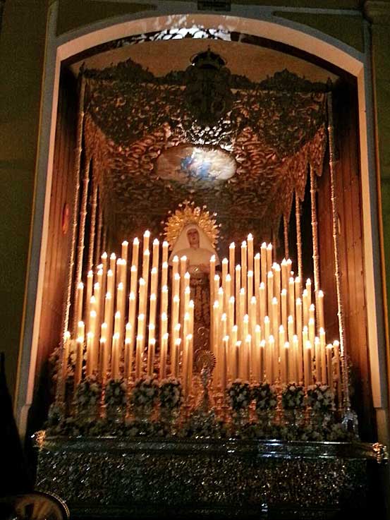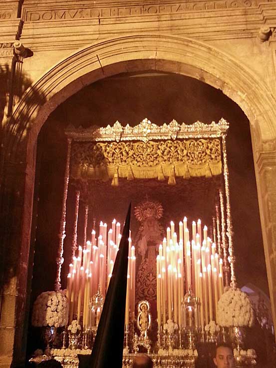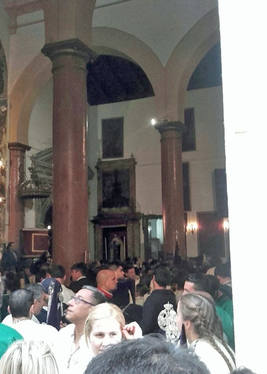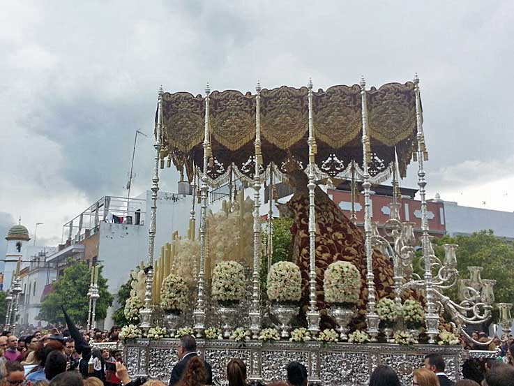 22 de Marzo de 2016 Ayer fue un dia muy complicado diluvió en Sevilla por la mañana , paro y la primera que decidió no hacer estación de penitencia fue la Hdad del Poligono San Pablo .- La Hdad de Santa Genoveva ( foto inferior ) decidió salir, pero a primeras horas de la tarde se dió la vuelta a su templo ( foto inferior ) . Estrenaba la restauración del palio ( VER ) La Hermandad del