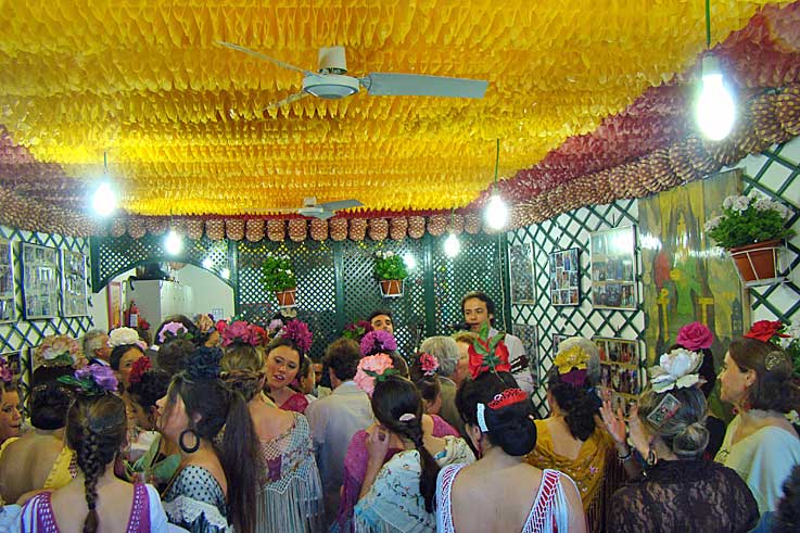Mucho capote como en alguna desacertada y frustrada salida procesional de este año de cuyo nombre no quiero acordarme Pero como dice la letra de la canción de Alejandro Sanz , "después de la tormeta siempre llega la calma" , salió el Sol, pero para que se hagan una idea era como si hubieran puesto el aire acondcionado, dentro y fuera de las casetas , y el personal que tenía ganas de Feria se vino arriba en el último tercio, pues se estaba realmente a gusto Extraño enganche una media potencia a la inglesa Una caseta llena de flores En cuanto a nuestra breve sección de moda flamenca. Unos curiosos pendientes con la Virgen del Robledo, patrona de Costantina - Sevilla - De las pasarelas a la Feria un impresionante vestido de la diseñadora Juana Martín ¿ Tanto control para carruajes y despues vemos Le Tour dentro de las calles de la Feria ? . Una cosa es que los ciclistas tengan patente de corso en el carril-bici-tieso de Sevilla pero esto ademas de peligroso está fuera de lugar Un año mas la tradicional botellona junto a la parada de taxis al final de la calle Antonio Bienvenida , que incluso resulta peligroso para las personas mayores que pretenden acceder a tomar un taxi y tropiezan con las bolsitas , llenas de botella de ginebra o ron , que hay repartidas por el suelo . Con la simple presencia de un patrullero de policia subido en la acera bastaria para evitarlo . Triste imagen tan inadecuda de la Feria , y que no tiene nada que ver con ella . ¿ En esto tampoco hay control policial , que curiosamente están muy cerca de este enclave de la Feria ? .-