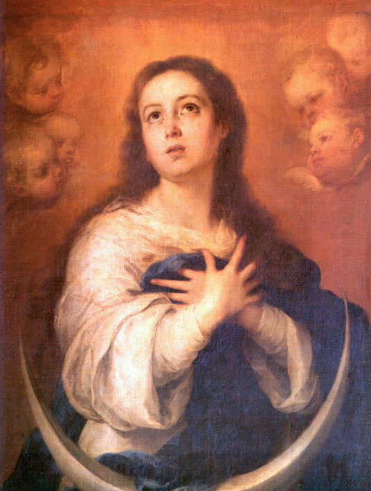 Aquí tienen un magnífico lienzo cerámico con solo el busto de la Inmaculada Concepción, en concreto el cuadro de Murillo titulado "Concepción de la Media Luna", que está en el Museo del Prado. Curiosamente s.e.u.o , es el úncio que de este tema esta hecho en relieve de barro vidriado, y pintado de blanco sobre fondo azul .-