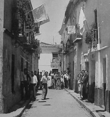 Julio de 1936 .Calle Pelay y Correa del barrio de Triana Miren el color de las banderas . BLANCAS |