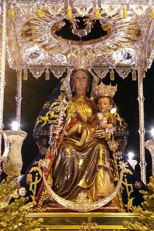 Casualidades de la vida, me entero que el pasado dia 12, se celebró su multitudinaria procesión en el Viso del Alcor donde todo el pueblo se vuelca, y como todo los santos tienen octava, les he querido dejar la que sea posiblmente la única plasmación cerámica de esta devoción mariana que hay en Sevilla .-