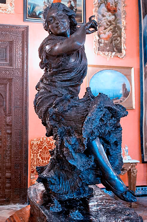 Por aquello de que estamos en plena Bienal de Flamenco de Sevilla ( se ve cada cosa ), si tiene el buen gusto de visitar Las Dueñas , ( como las demás casas señoriales de Sevilla visitables) , precisamente presidiedno el llamado salón de la gitana, hay una espectacular bailaora de bronce, obra nada mas y nada menos que de Mariano Benlliure ( el del mausoleo del Joselito el Gallo en el cementerio de San Fernando ) .-