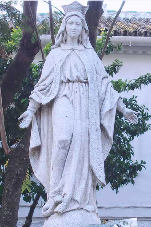 Es una representación de la Virgen Milagrosa de tamaño académico realizada en piedra artificial sobre pedestal de ladrillo visto. La figura de la Virgen aparece siguiendo la disposición típica de esta iconografía mariana . Originariamente estuvo en el centro de la Plaza de San Gonzalo de Sevilla, estando en la actualidad situada en uno de sus lados .-