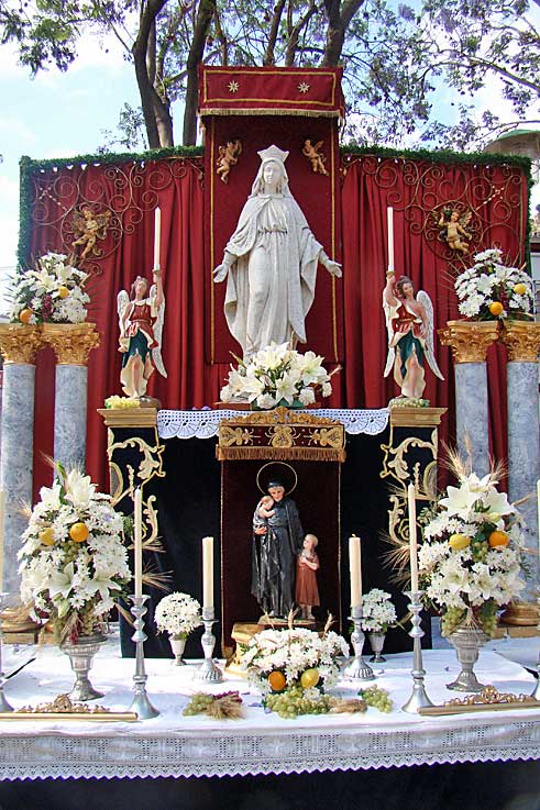 En el pasado Corpus de San Gozalo en torno a la escultura y pedestal de la Milagrosa se montó un curioso altar en la plaza